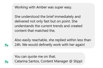 If you’d like to see more, or want to know if I’ve worked in your area or niche, email me at: amber.maywoodugc@gmail.com and I can share some examples!